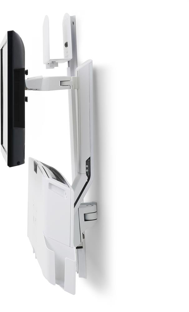 Ergotron 45-594-216 SV Combo System with Worksurface & Pan, Small CPU Holder - Kit de montaje (soporte para CPU, reposamuñecas, soporte de montaje en pared, kit de soporte de montaje en carril, bandeja corredera para ratón, montaje de monitor, soporte para escáner de código de barras y ratón, brazo combinado, superficie de trabajo con bandeja de teclado) para pantalla LCD/teclado/ratón/escánder de código de barras/CPU (Elevar y girar) - aluminio, plástico de alta calidad - blanco - tamaño de pantalla: hasta 24 pulgadas - se puede instalar en la pared